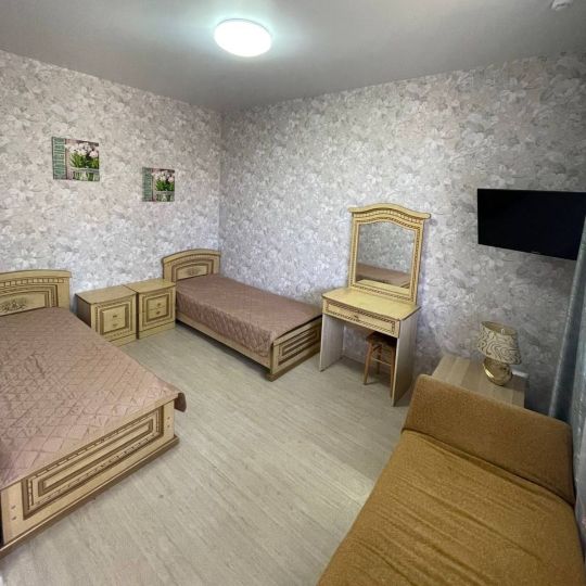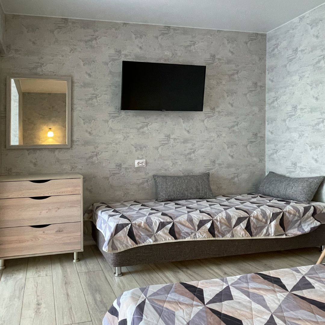 Уютный светлый номер со всеми удобствами на 1 этаже. Три односпальные кровати. В номере своя веранда, где можно провести время за теплой беседой со своей семьей.